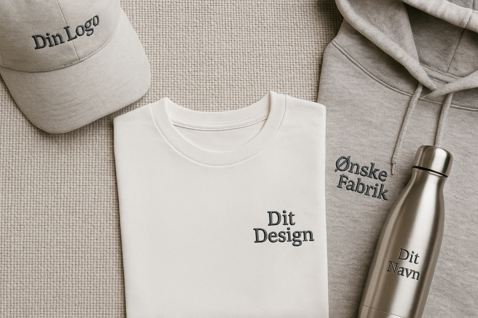 Vi forædler tekstiler og accessories med broderi, tryk, lasergravering og meget mere.